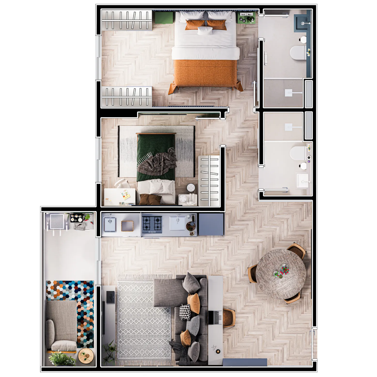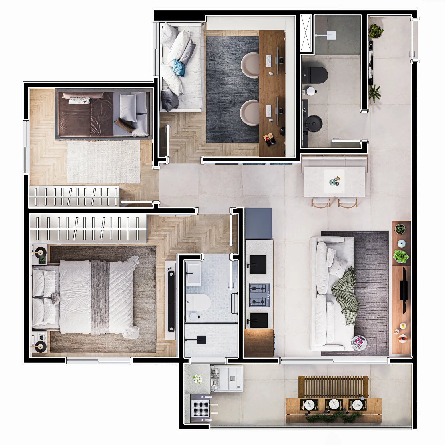 Um clássico contemporâneo no coração da cidade. Plantas elegantes com suíte e varanda gourmet, coberturas penthouse e lazer completo pensado para o dia a dia.